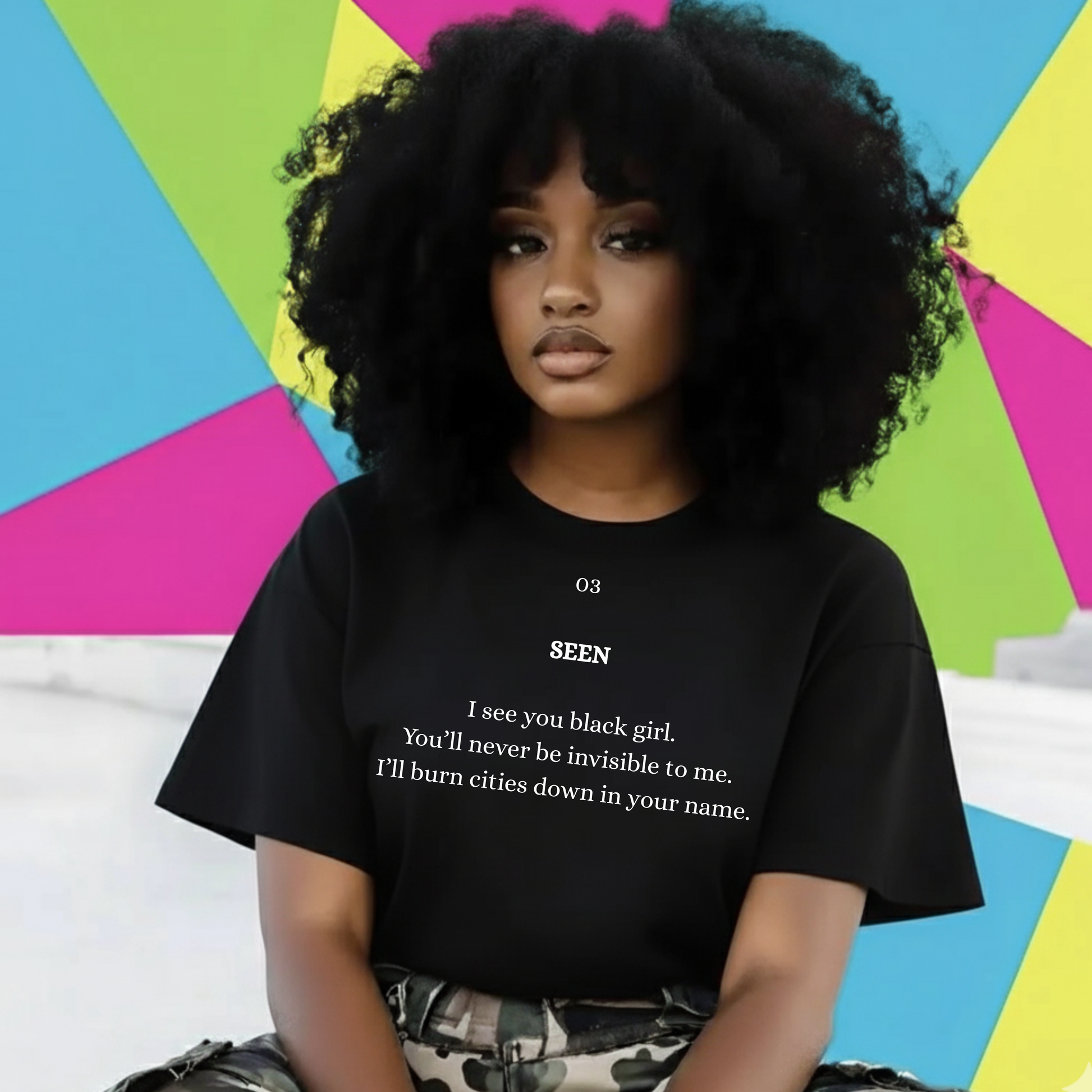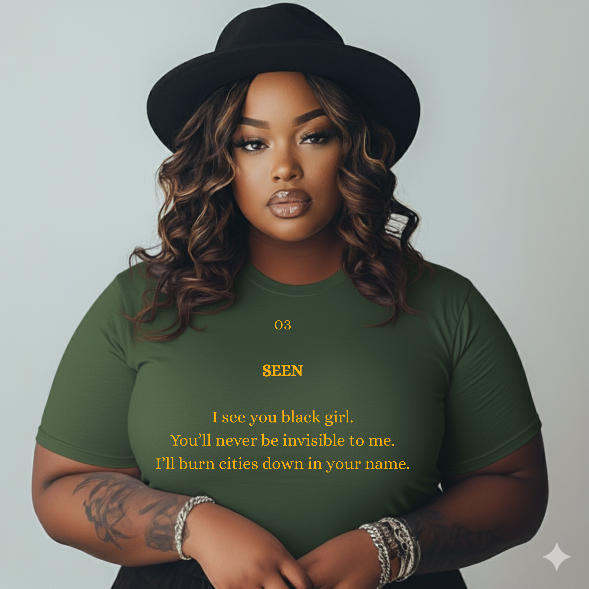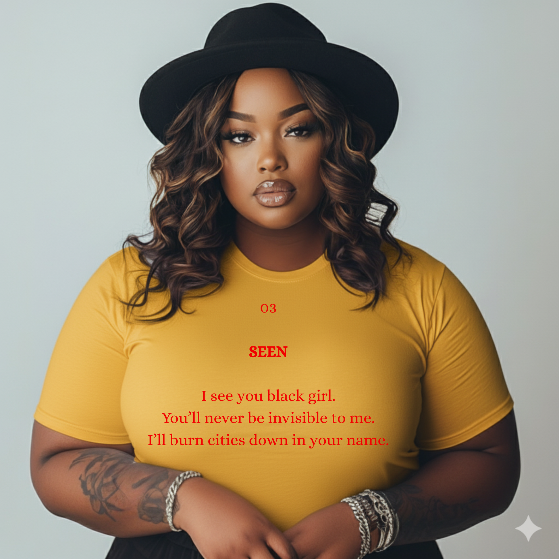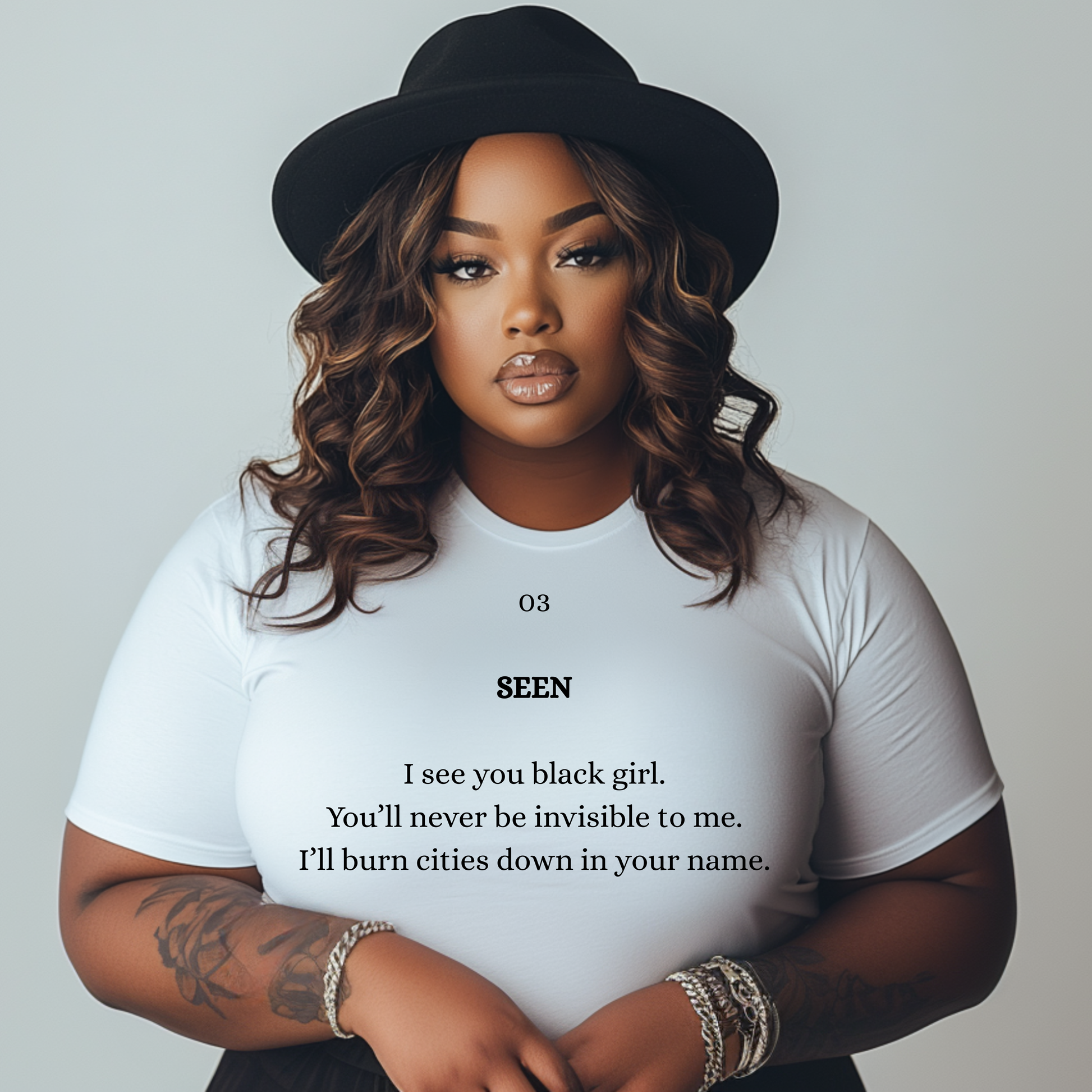 The 03 SEEN Sweatshirt was made for the Black woman who refuses to be unseen — confident, radiant, and unapologetically visible. It’s soft, powerful, and speaks volumes without needing to shout.