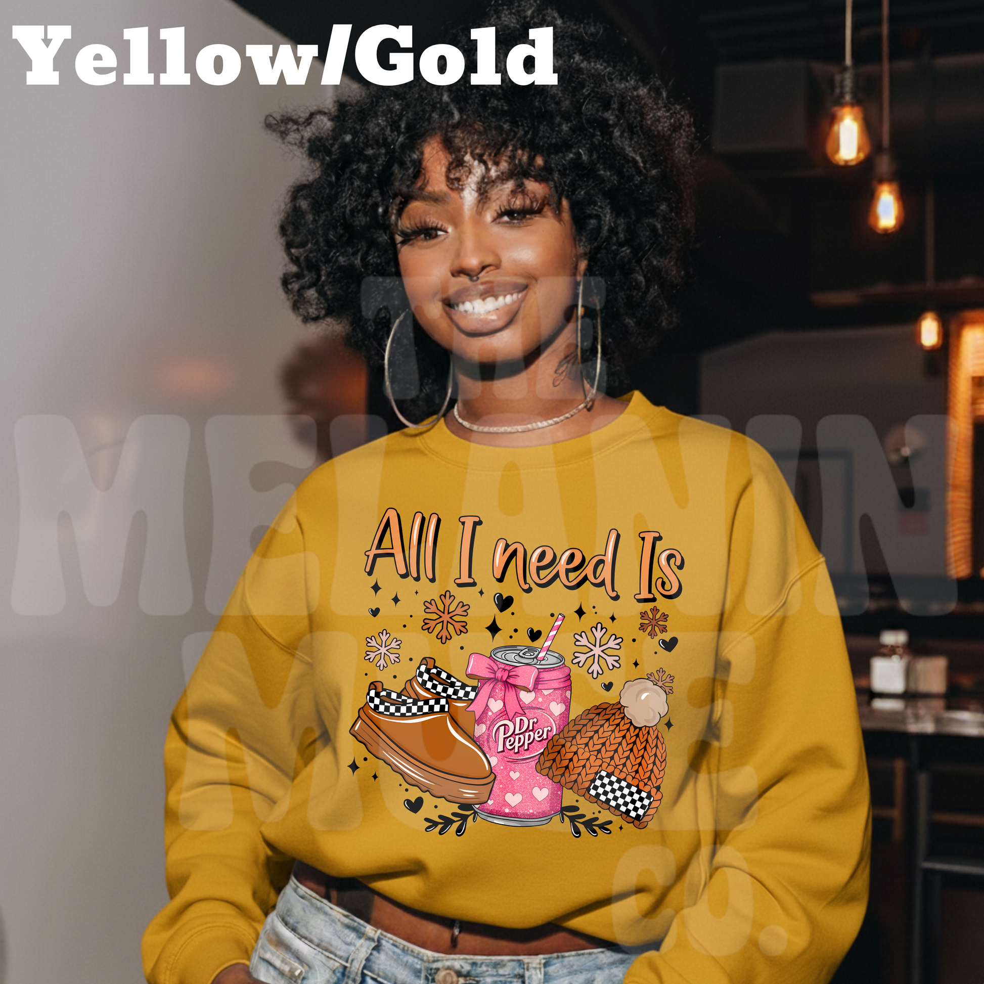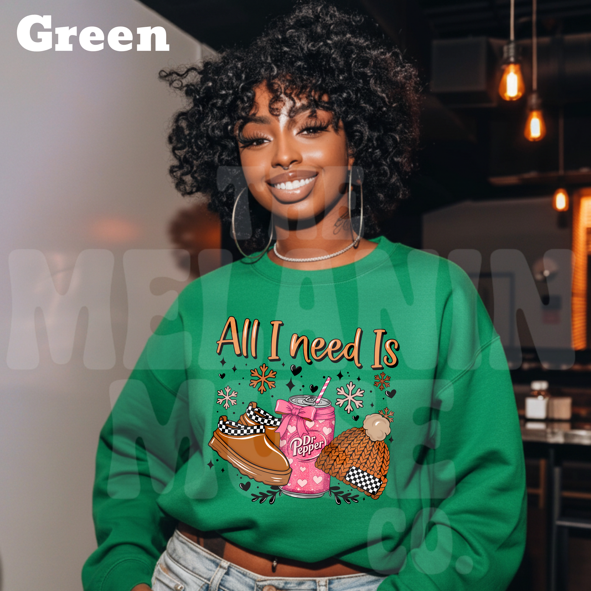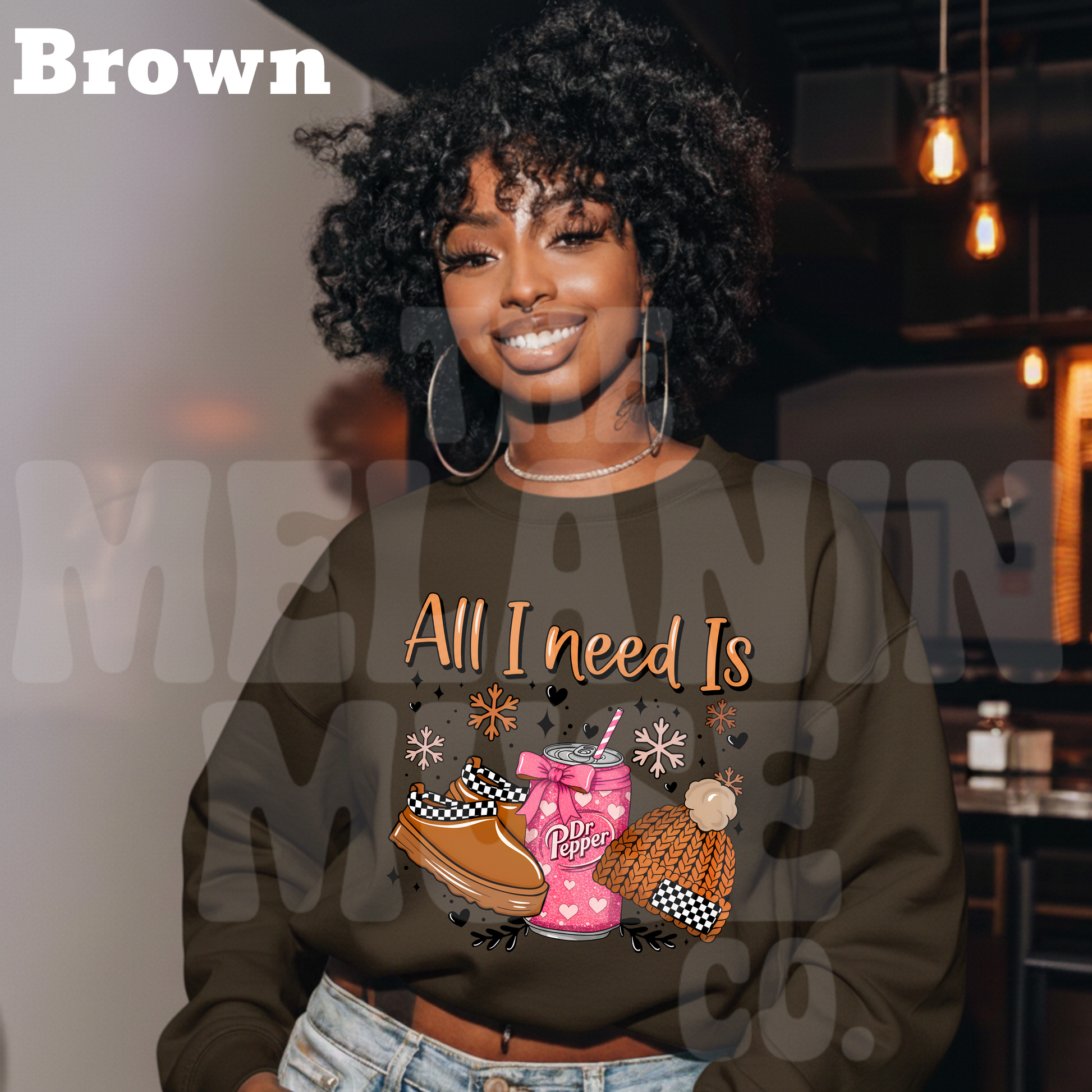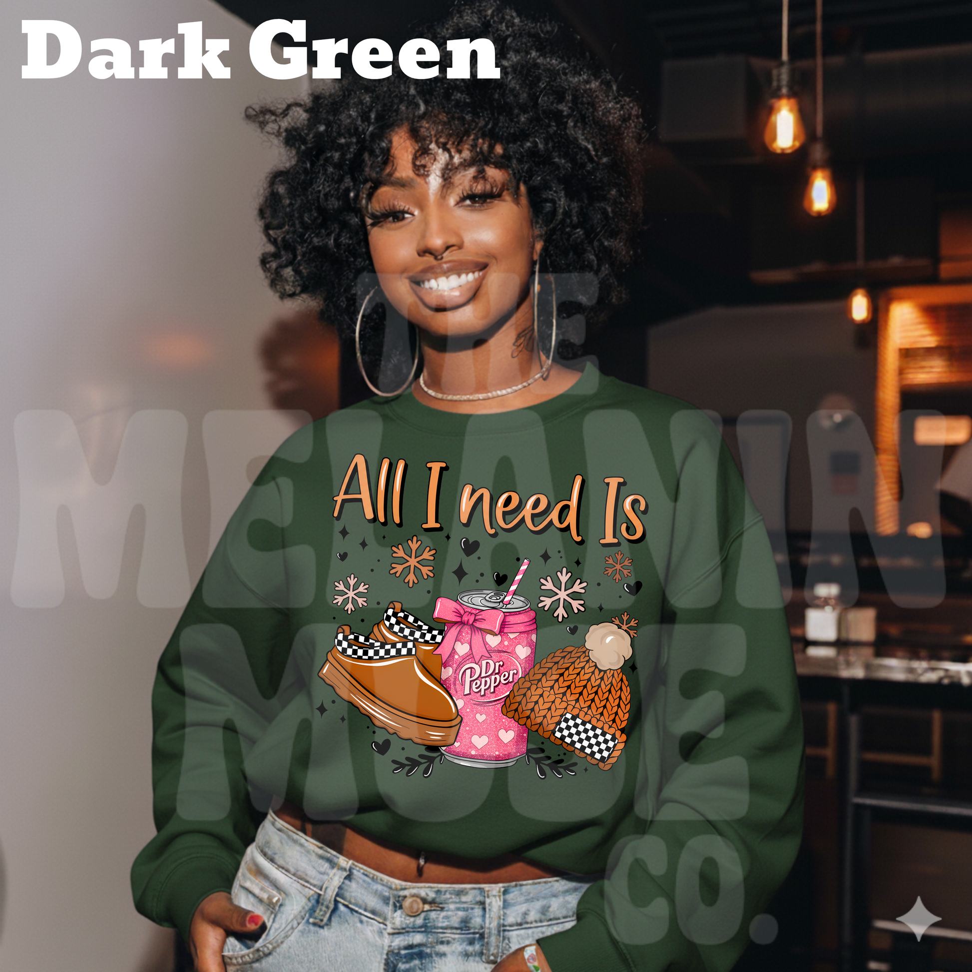 Because some days, all you need is your favorite drink, your cozy fit, and good vibes only. This soft, high-quality sweatshirt is a whole mood โ designed for the woman who loves her Dr Pepper, her comfort, and her style. Featuring fun fall elements like cozy boots, a chunky knit hat, and a can of Dr Pepper wrapped in seasonal charm, itโs perfect for sipping, lounging, or stepping out in confidence.