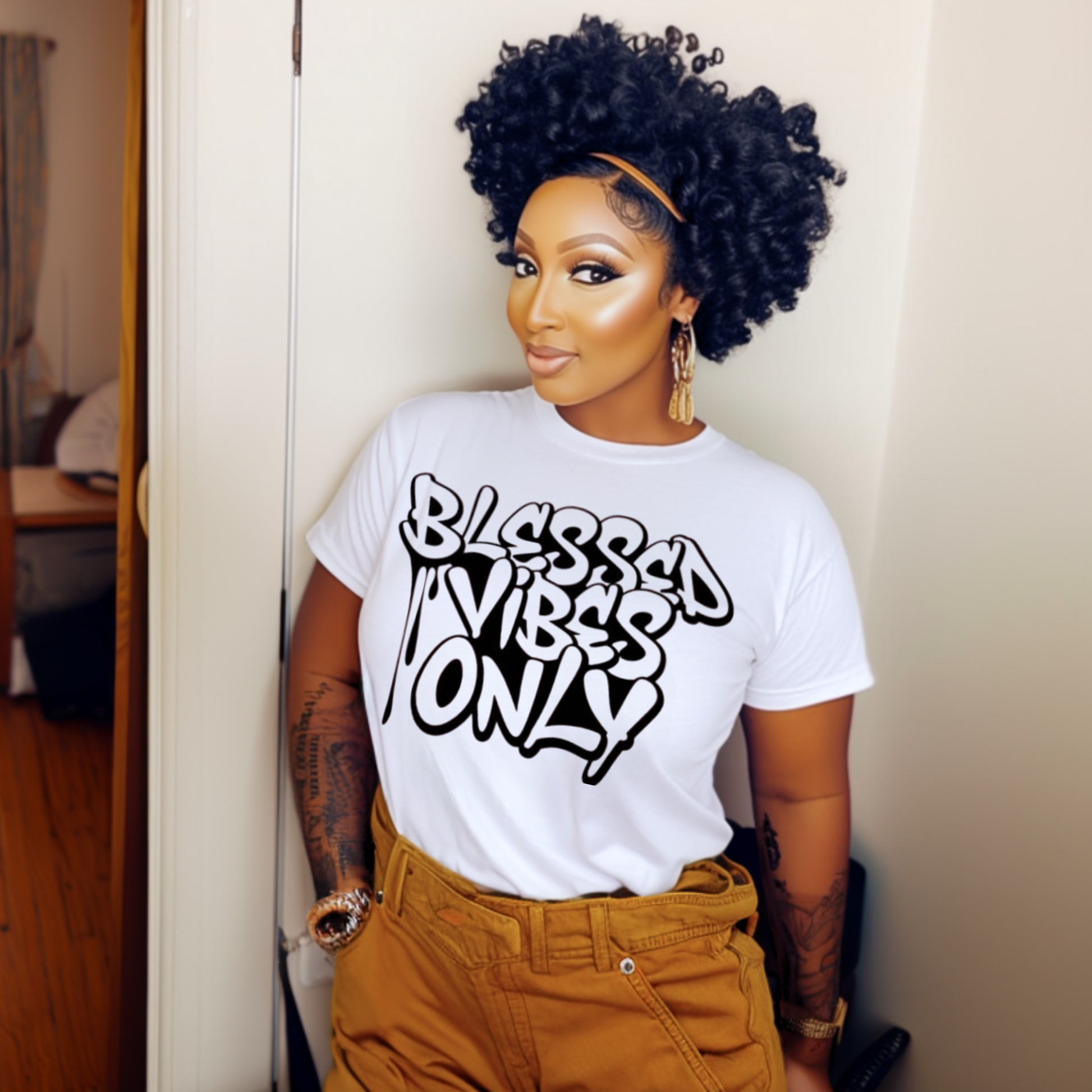The Blessed Vibes Only tee is for the one who protects her peace, praises through the pressure, and won’t entertain anything that doesn’t align with her joy. It’s not about perfection—it’s about perspective. And this shirt is a soft, stylish reminder that favor follows you everywhere.