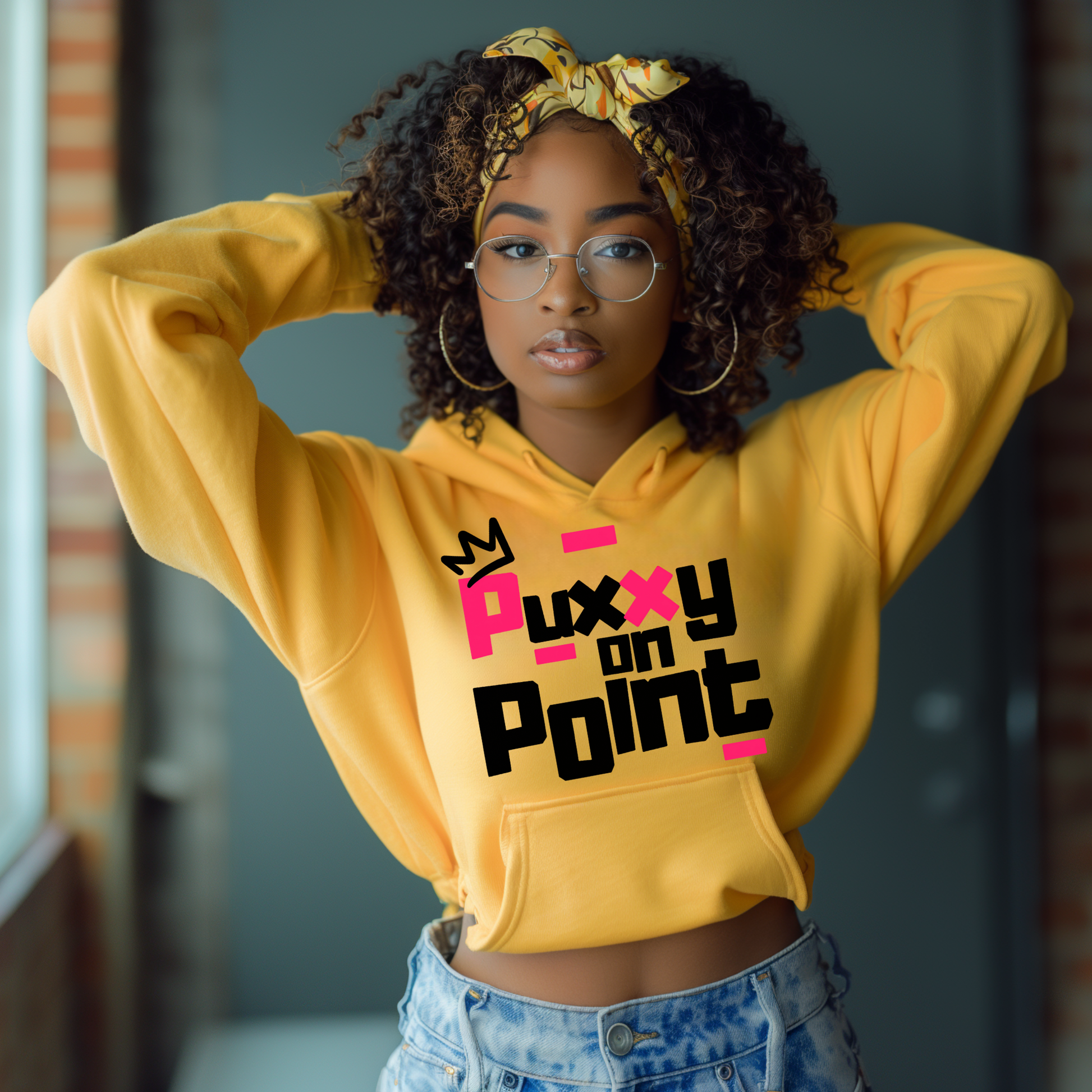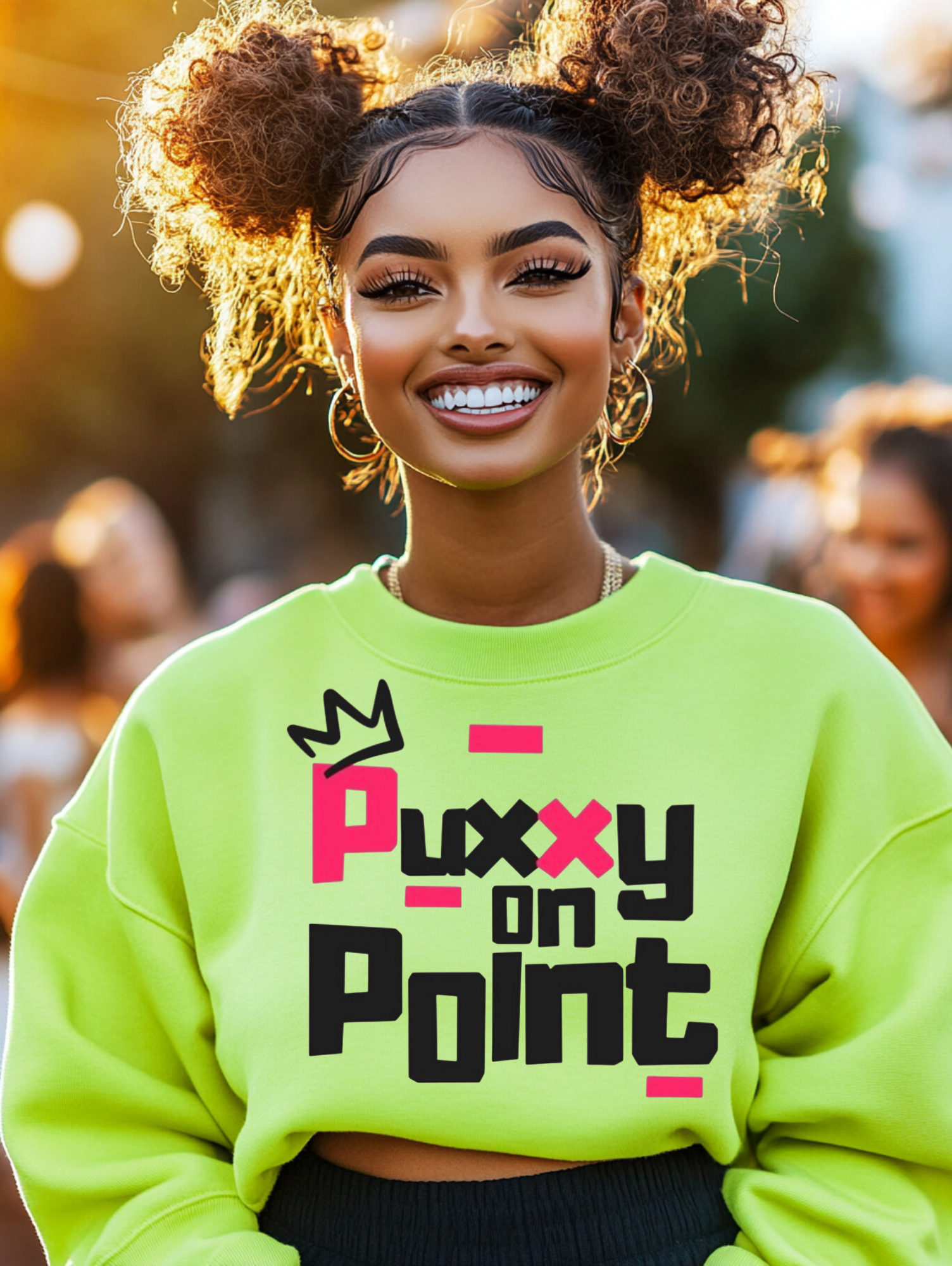 The Puxxy On Point Sweatshirt is for the woman who walks in her power, knows her worth, and isn’t afraid to say it out loud. This piece is bold, cheeky, and unapologetically feminine — designed for the one who owns her vibe, her energy, and her softness with authority.